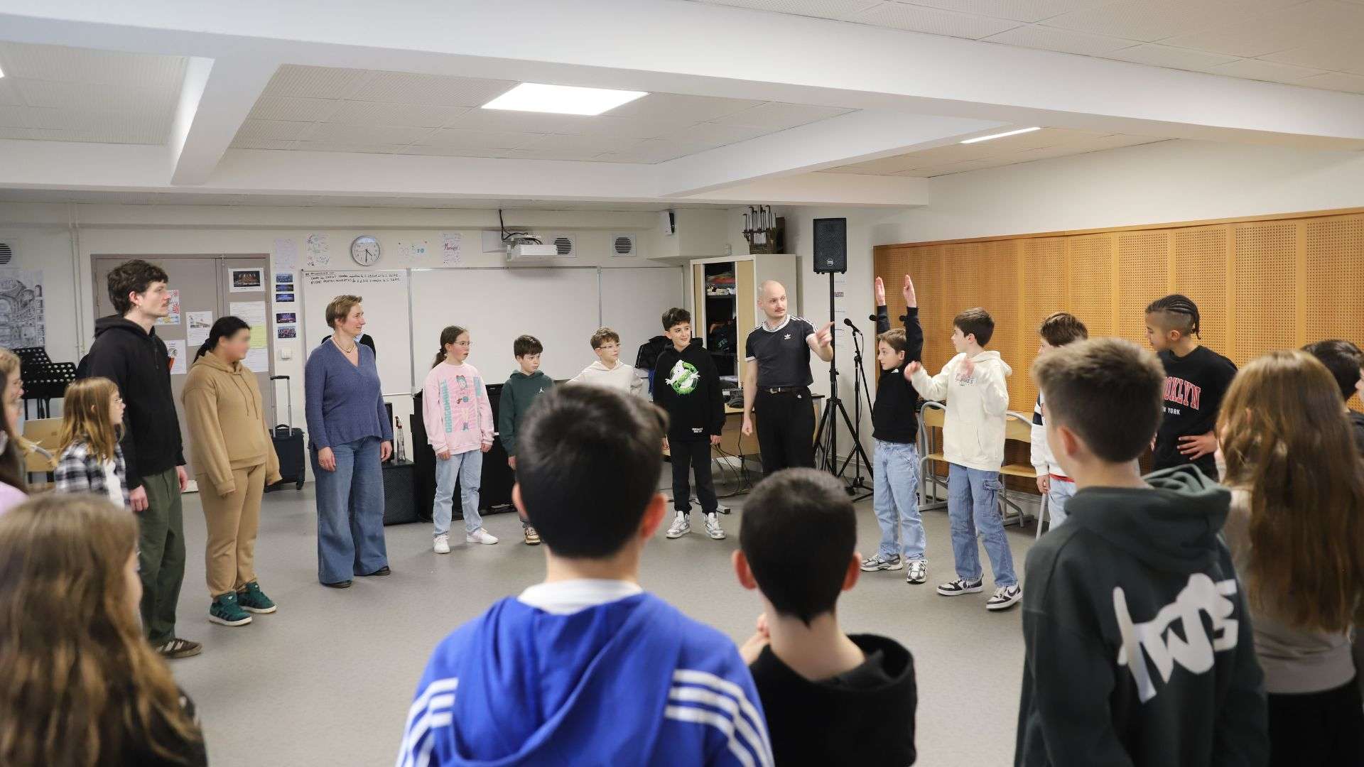 Après s'être amusé·es avec les vers et maintes réductions de texte, les élèves sont arrivé·es à leur version finale et ont expérimenté des interprétations slamées et chantées de leurs écrits, jusqu’à sélectionner la méthode qui leur convenait le mieux.