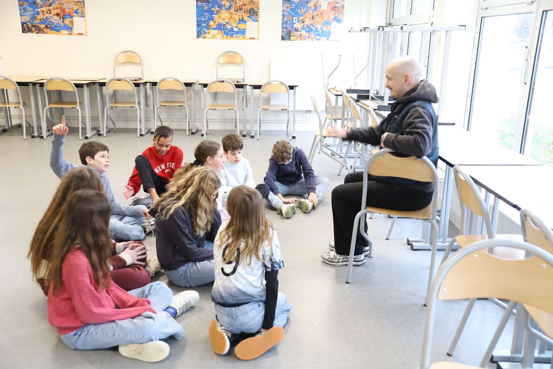 Pour libérer les esprits créatifs de leur enveloppe corporelle d’élèves sages et discipliné·es, Martin leur a fait pratiquer des exercices d’interprétations théâtrales impliquant le corps et la voix, par exemple des combats au ralenti où les visages se déforment jusqu'à devenir élastiques et où tous les coups sont permis (de nouveau).