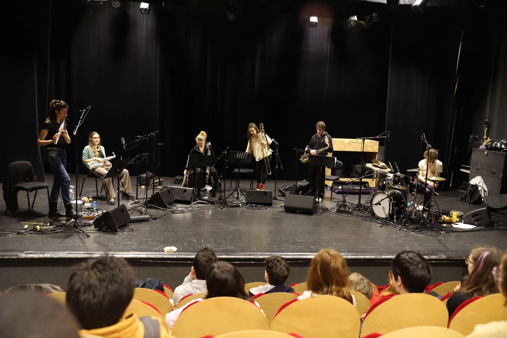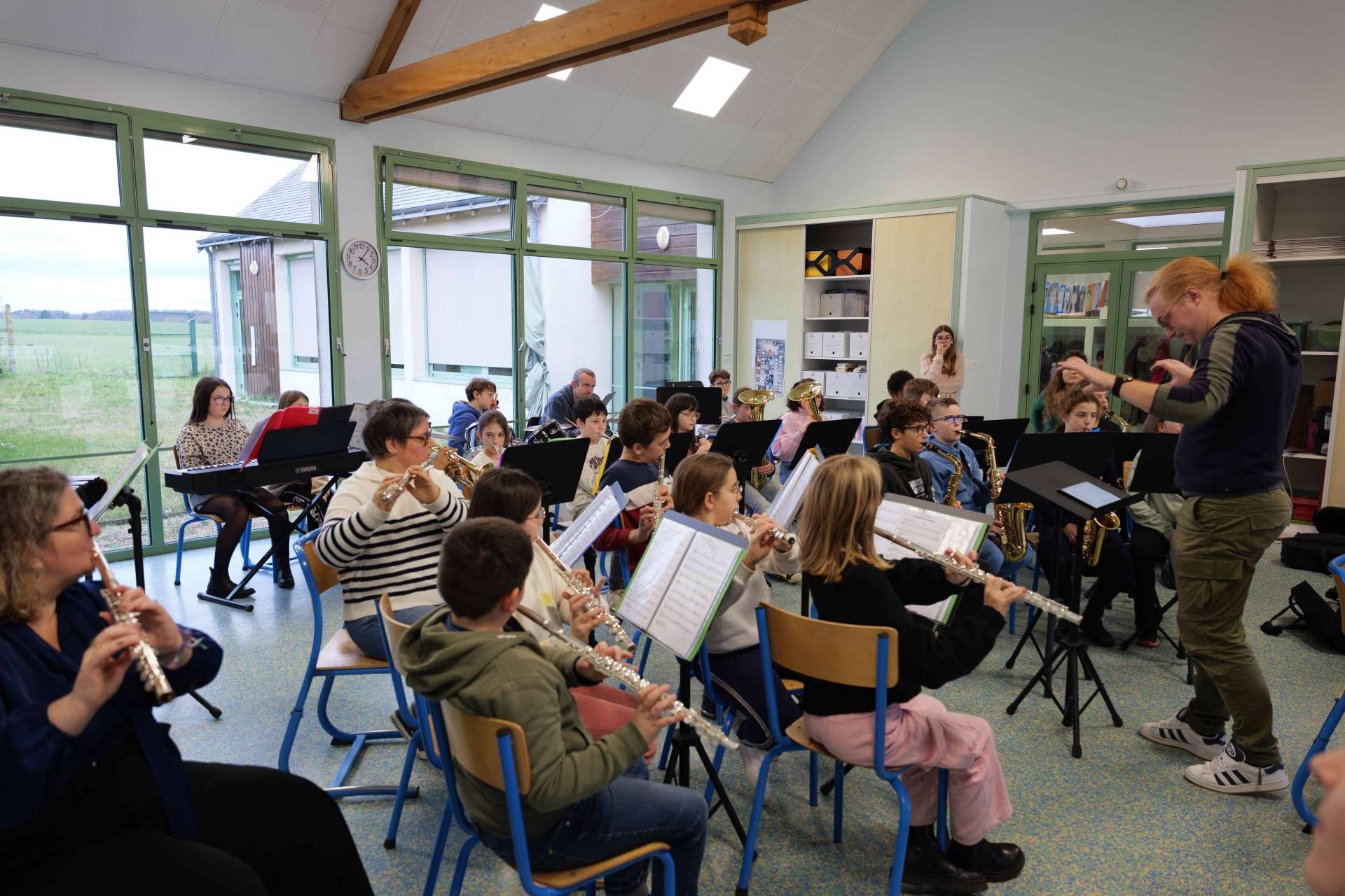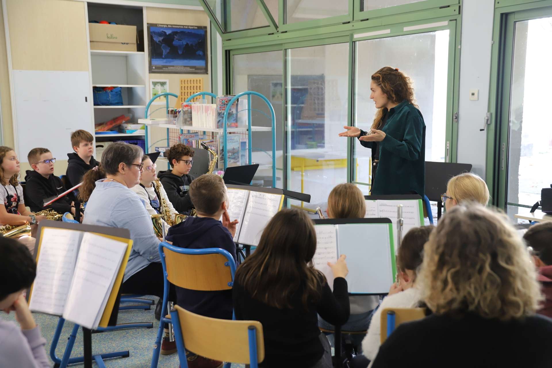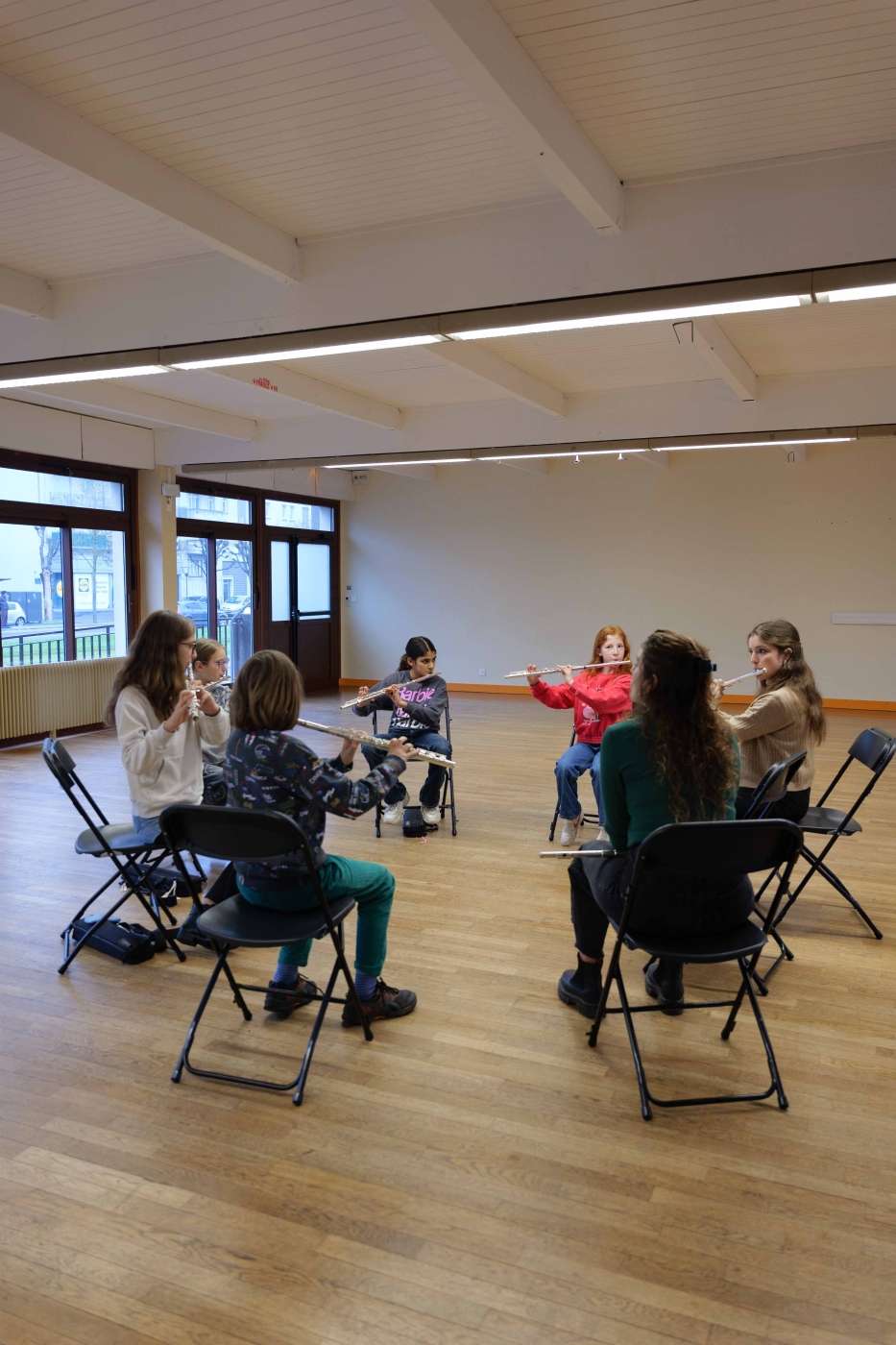Pour les aider à s'approprier l’improvisation en collectif, Léa a amené son outil de prédilection : le Soundpainting — un ensemble de signes gesticulés pour diriger et composer en temps réel. C’est ainsi qu’à chacune de ses venues, Léa et les orchestres répètent, répètent et RÉPÈTENT les parties écrites — chaque fois un peu plus mûres, grâce aux répétitions hebdomadaires avec les enseignant·es des écoles de musique Jazz à Tours et EDM CVL d'Avoine — les gestes de soundpainter, ainsi que les modes d'improvisation, aussi farfelus soient-ils !