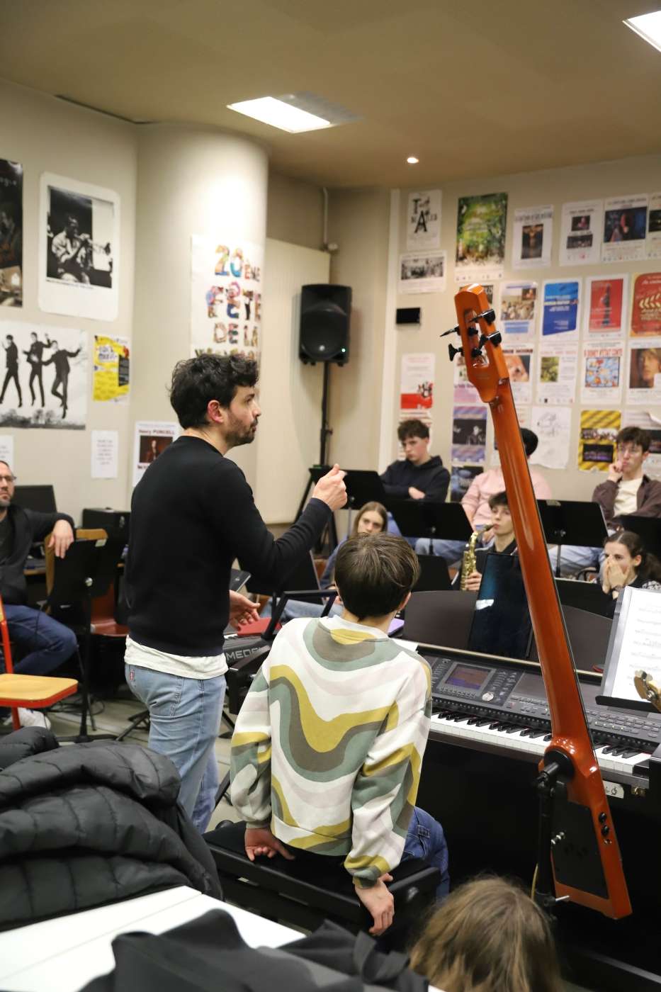 Séance n°4 en compagnie de Bruno Ruder. Si vous avez suivi le dernier épisode, le mot d’ordre était la « transmission orale », les partitions, ça dégage ! Les élèves ont appris les parties instrumentales d’un seul et même morceau, et pour cette fois, iels avaient comme règle du jeu de les disposer comme bon leur chante !