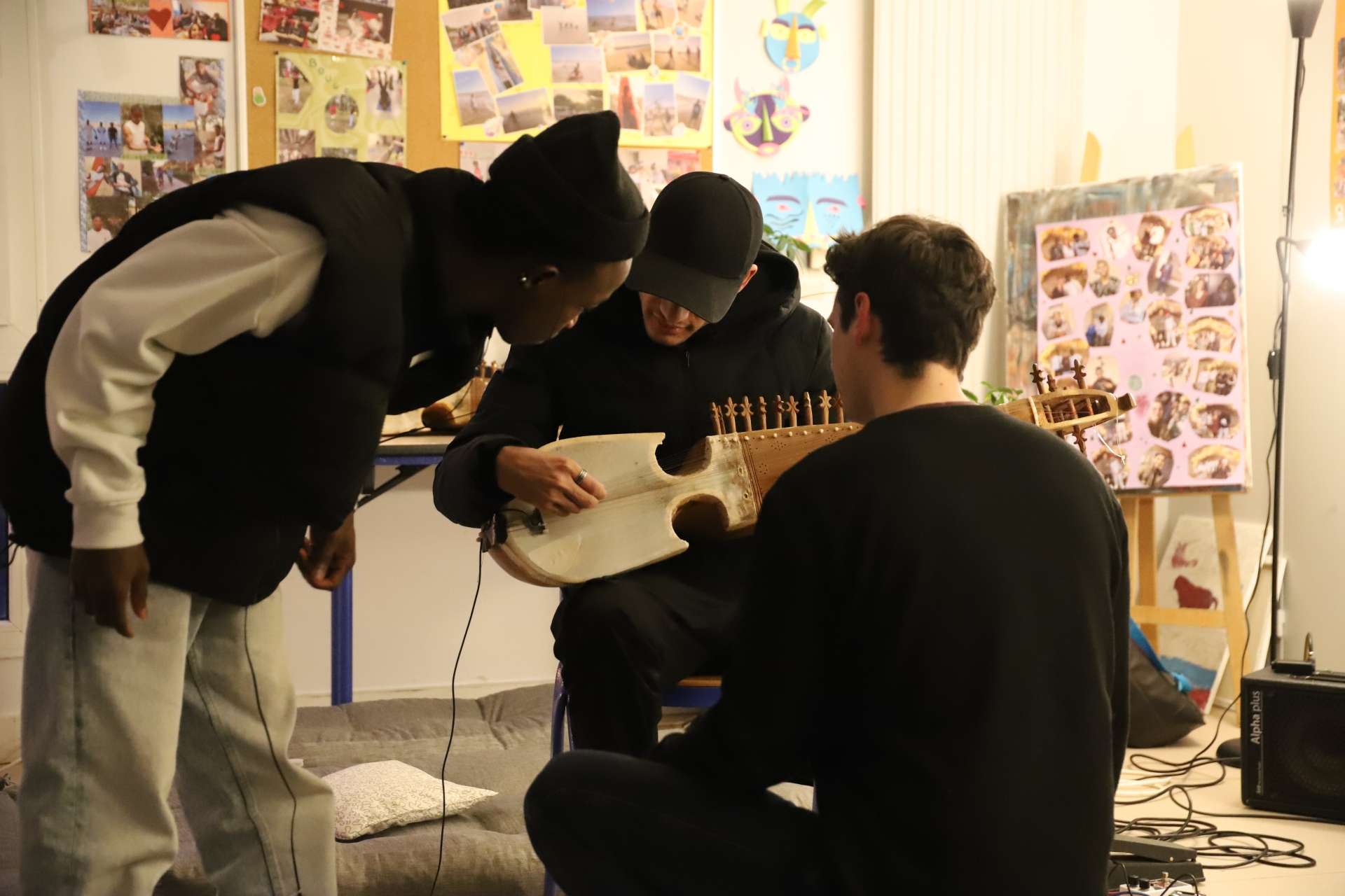 À l’heure du goûter, nous avons été accueillis à Entraide & Solidarités pour « 1 Salon, 2 Musiciens » en compagnie de Sébastien Boisseau, Joséphine (sa contrebasse), ainsi qu'Elie Garcia, sa guitare et son luth afghan, le robab. Ce sont les jeunes du service des Mineurs Non-Accompagnés qui nous ont ouvert leurs portes et avec qui nous avons partagé un moment musical et interculturel émouvant.
