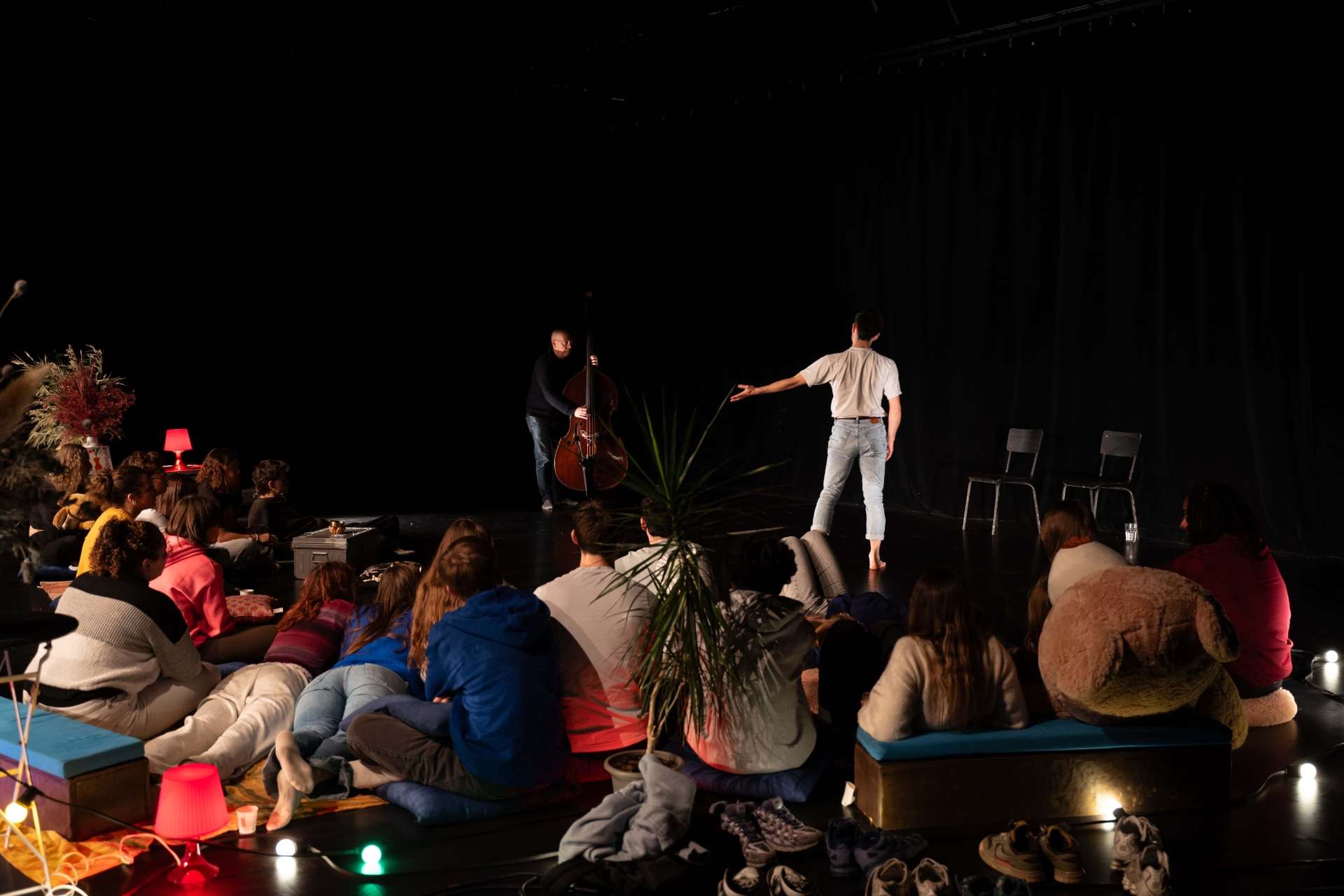 Quoi de mieux que « 1 Salon, 2 Gestes » au Centre Chorégraphique National de Tours pour rencontrer les étudiant·es de l’I.U.T Carrières Sociales ?! Entre coussins, boissons chaudes et performance, on prend le temps de discuter de ce qui émerge, de pourquoi et est-ce qu'on partagerait cette expérience avec des personnes qu’on accompagne ? Les étudiant·es — en professionnalisation vers des métiers d’animation sociale et socioculturelle — découvrent les coulisses du secteur culturel pour (pourquoi pas) infuser leur futures pratiques.