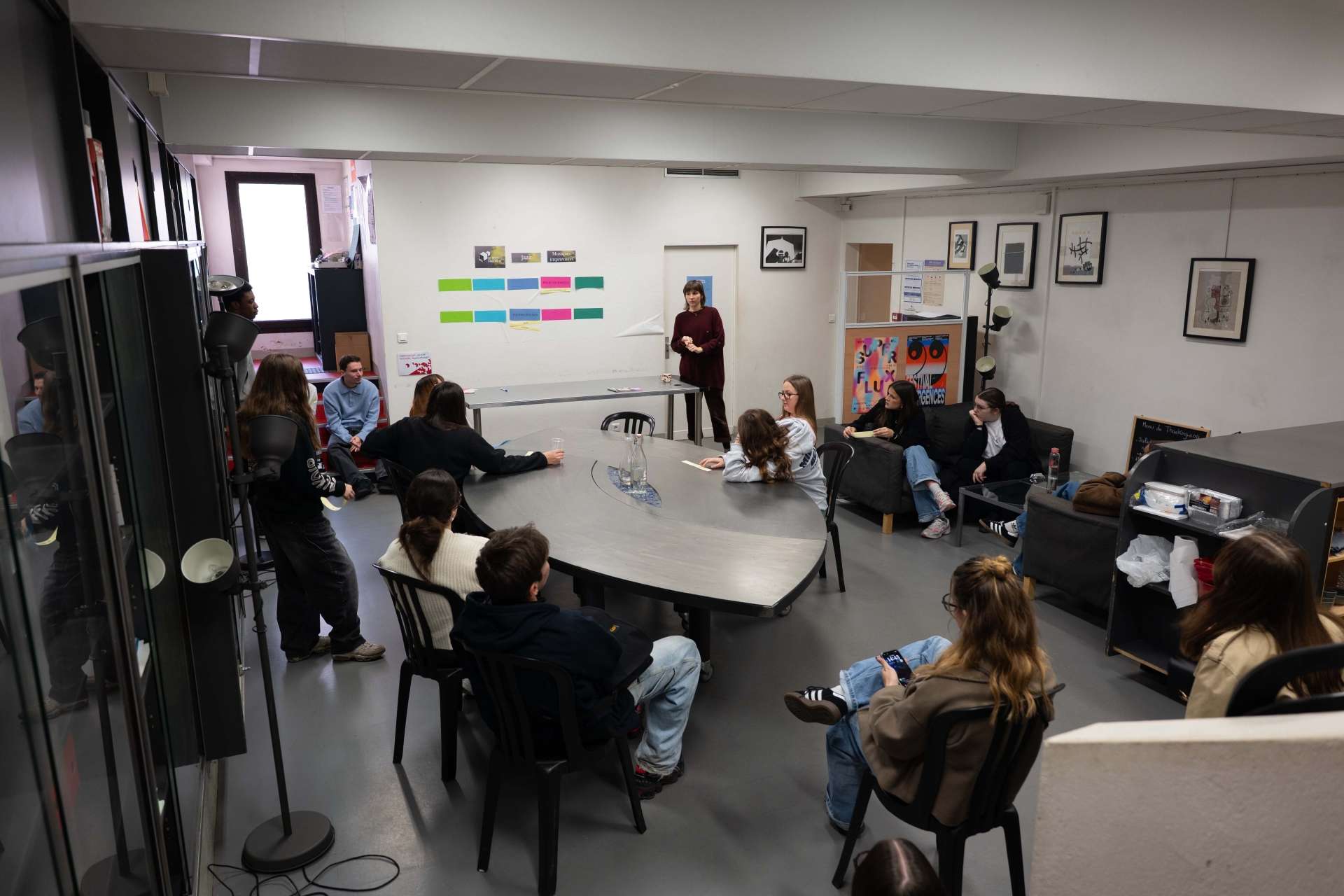 Leur traversée continue, cette fois-ci au Petit faucheux, où Clara leur présente notre fonctionnement, nos missions et les métiers qui font vibrer nos murs. Et puis (comme de par hasard), depuis plusieurs jours déjà, c'est le projet Marsavril qui habitait nos murs et qui ouvra ses portes d’enregistrement aux étudiant·es, à pas de velours.