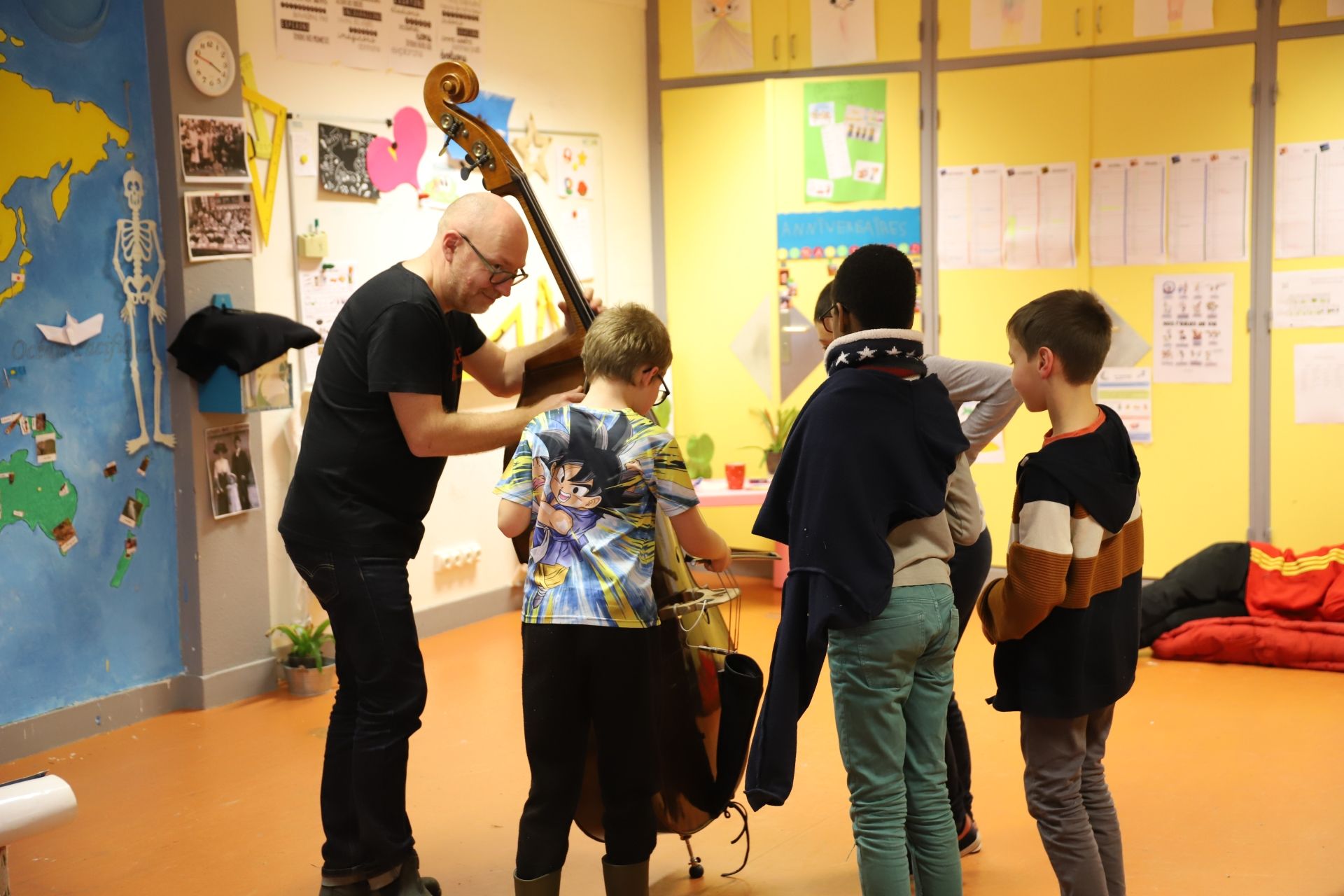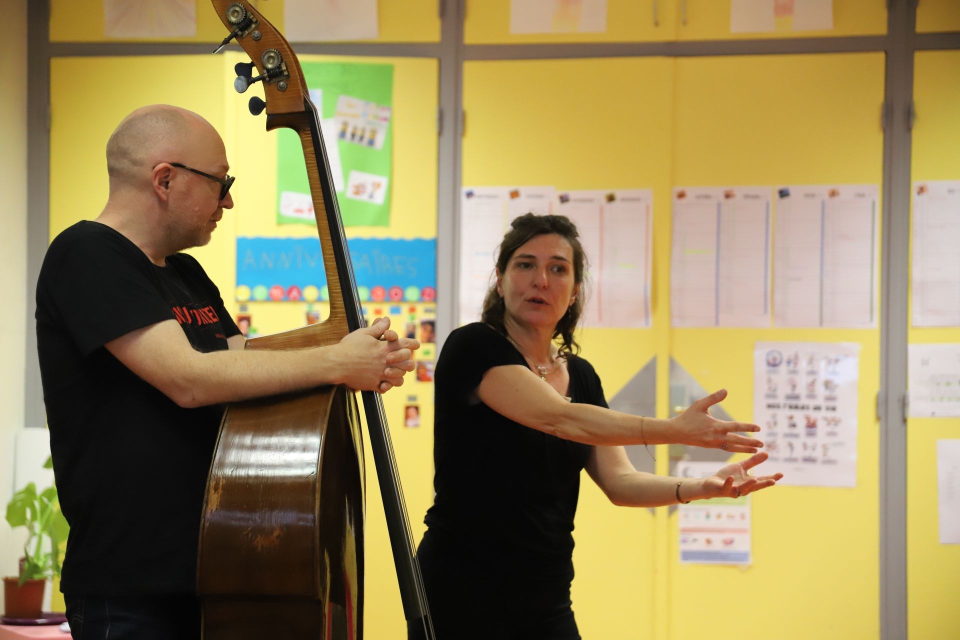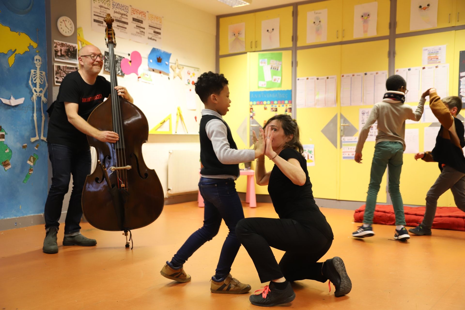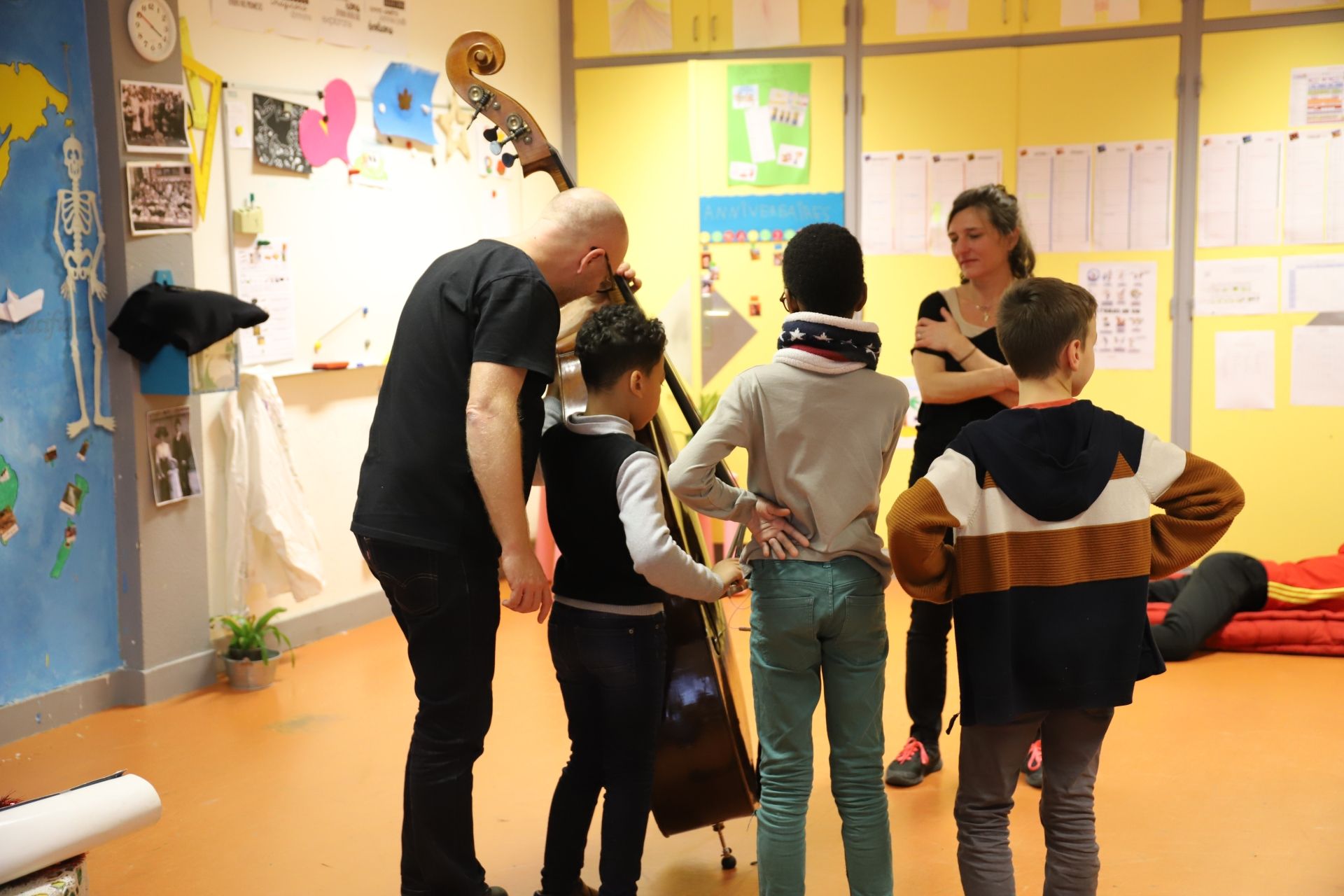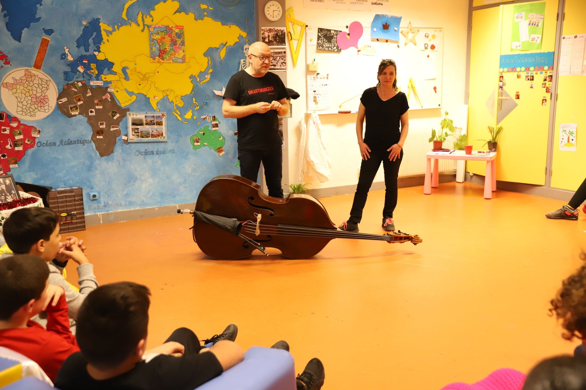 Le mardi 17 janvier 2023, l’Institut Thérapeutique Éducatif et Pédagogique (ITEP) « l’Éveil » de Tours Centre en partenariat avec le Petit faucheux et le Centre Chorégraphique National de Tours (CCNT) a accueilli la proposition artistique « 1 Salon, 2 Gestes » avec le contrebassiste Sébastien Boisseau et la danseuse Véronique Teindas. Ce moment de musique et de danse a été partagé avec les enfants du groupe des petits (entre 7 et 10 ans), des grands (entre 11 et 15 ans) et les Éducateur.ice.s Spécialisé.e.s.
