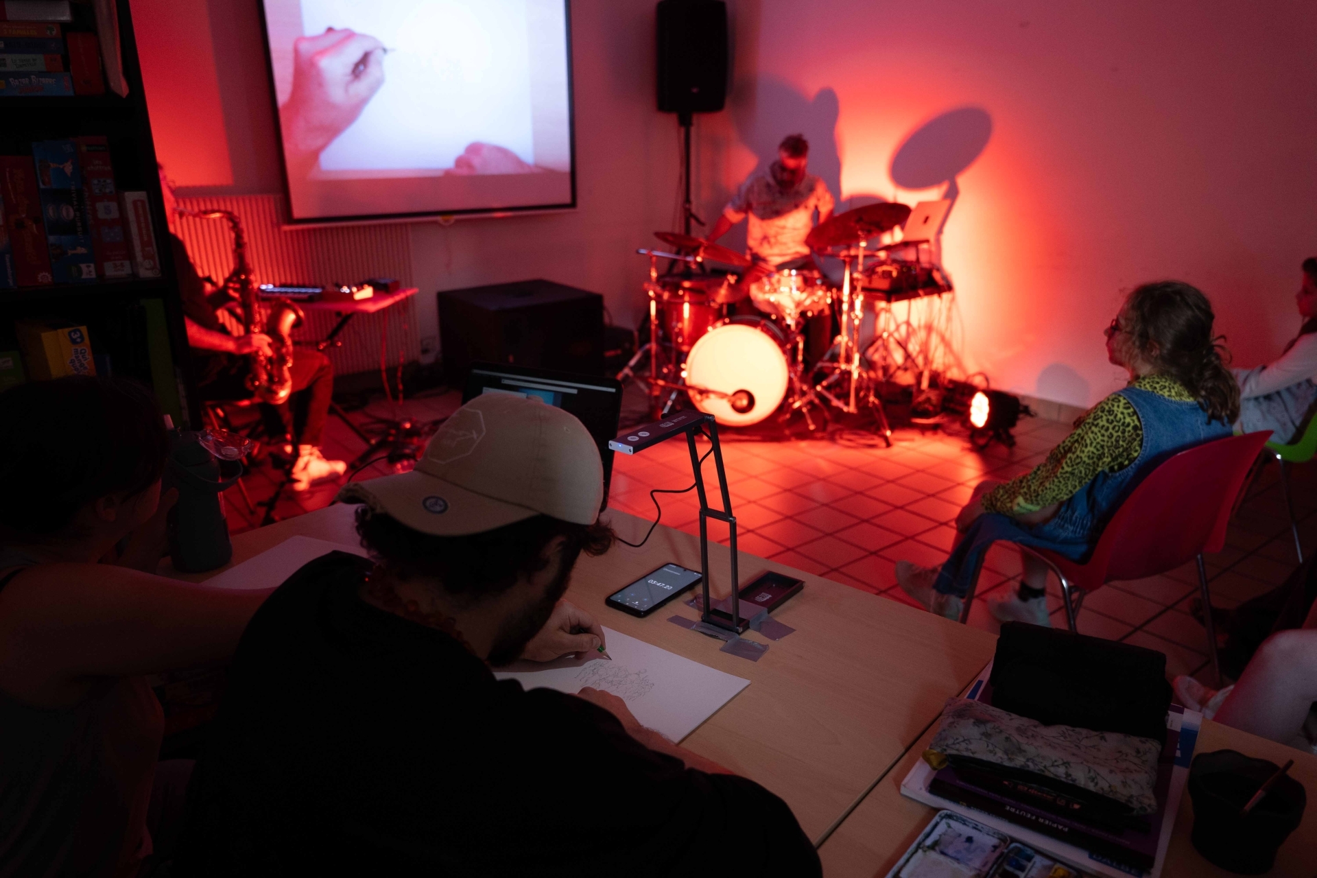 • Atelier de bande dessinée suivi d’un BD Concert à la Maison des Jeunes et de la Culture avec les musiciens Uriel Barthélémy, Jonas Muel et les dessinateur·ices Moon Li, Étienne Bonnet et Charles Manitow.