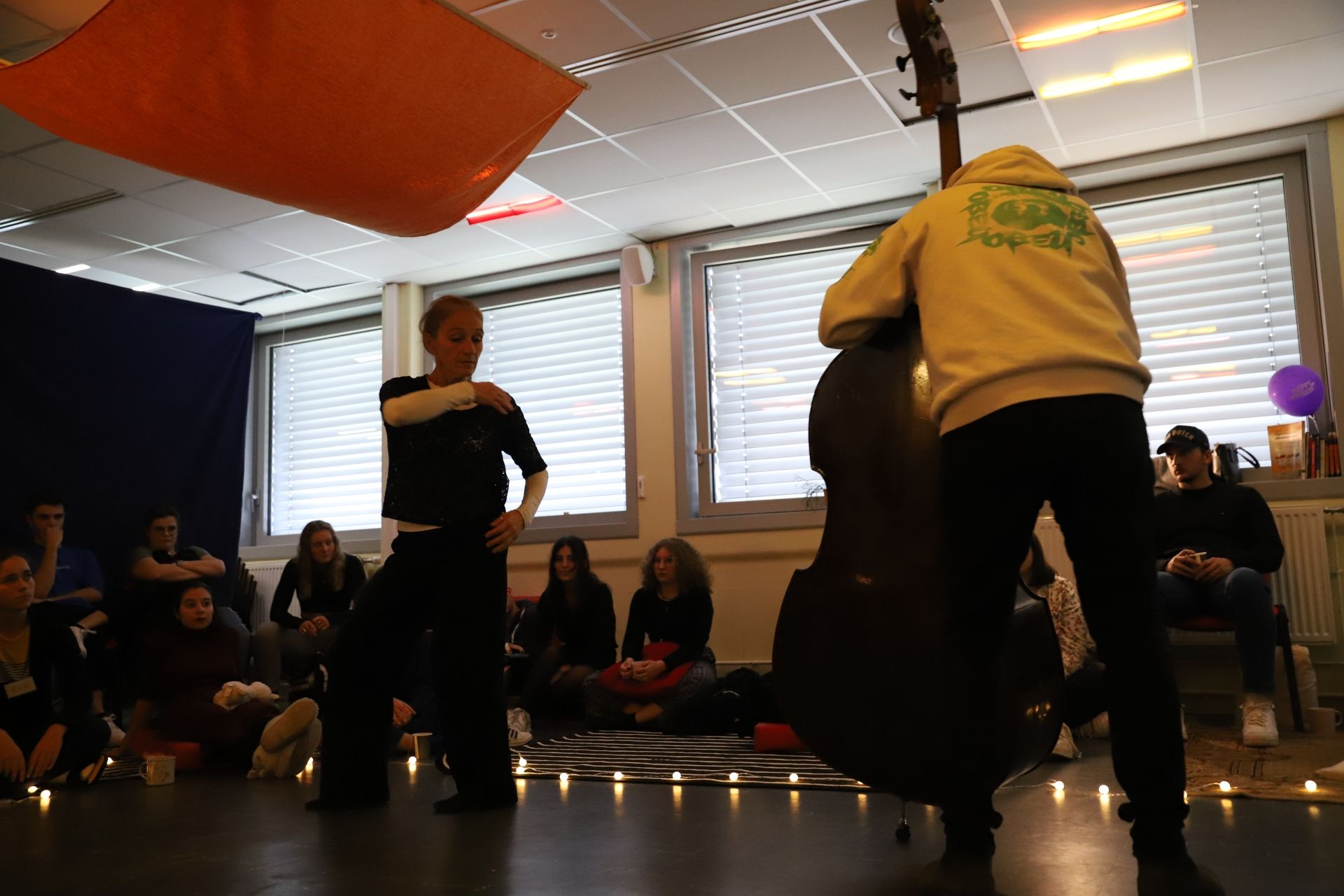 Cette discussion inédite piqua la curiosité des étudiant.e.s et les emmena plus tard dans la soirée, accompagnée de leur professeur.e.s Mme Sophie Rothé et Mr. Pierre Billion, jusqu'au concert de la version #2.2 de The Bridge, à la suite duquel un dernier échange pris naturellement place avec les artistes, pour finir la soirée en beauté.
