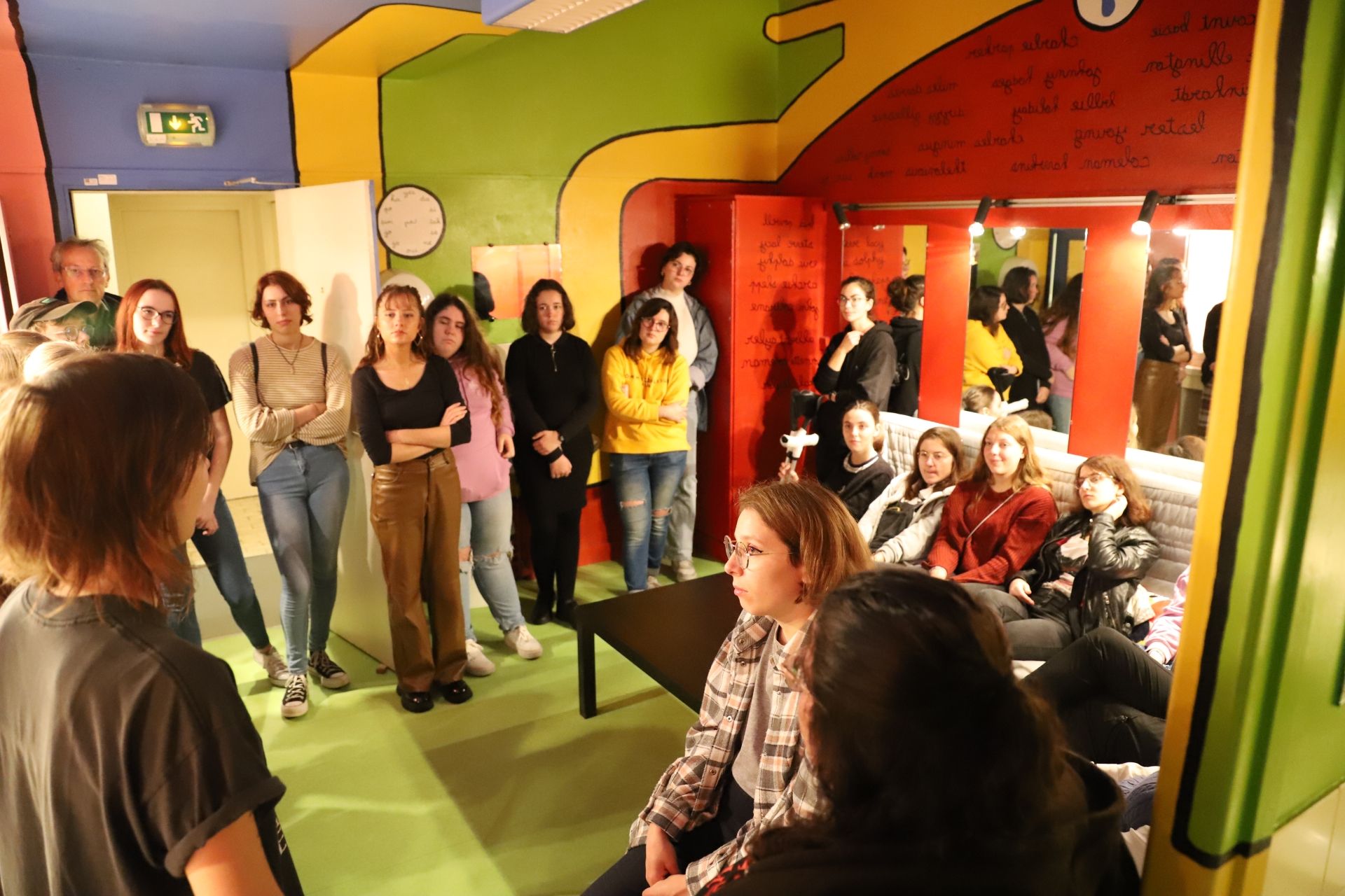 C'est tout un parcours initiatique qui s’est articulé avec ces étudiant.e.s, afin de saisir d’un peu plus près l'enjeu de leurs futurs métiers dans un contexte culturel, comme celui Petit faucheux. Ce parcours a commencé à l'IUT vendredi 21 octobre, avec "1 Salon, 2 Gestes" animé par Sébastien Boisseau et Emmanuelle Gorda (CCNT). Artistes et étudiant.e.s ont partagé un moment d'évasion décomplexé et intimiste, où les langues se sont déliées pour une discussion autour de la réception artistique selon les constructions culturelles et sociales.